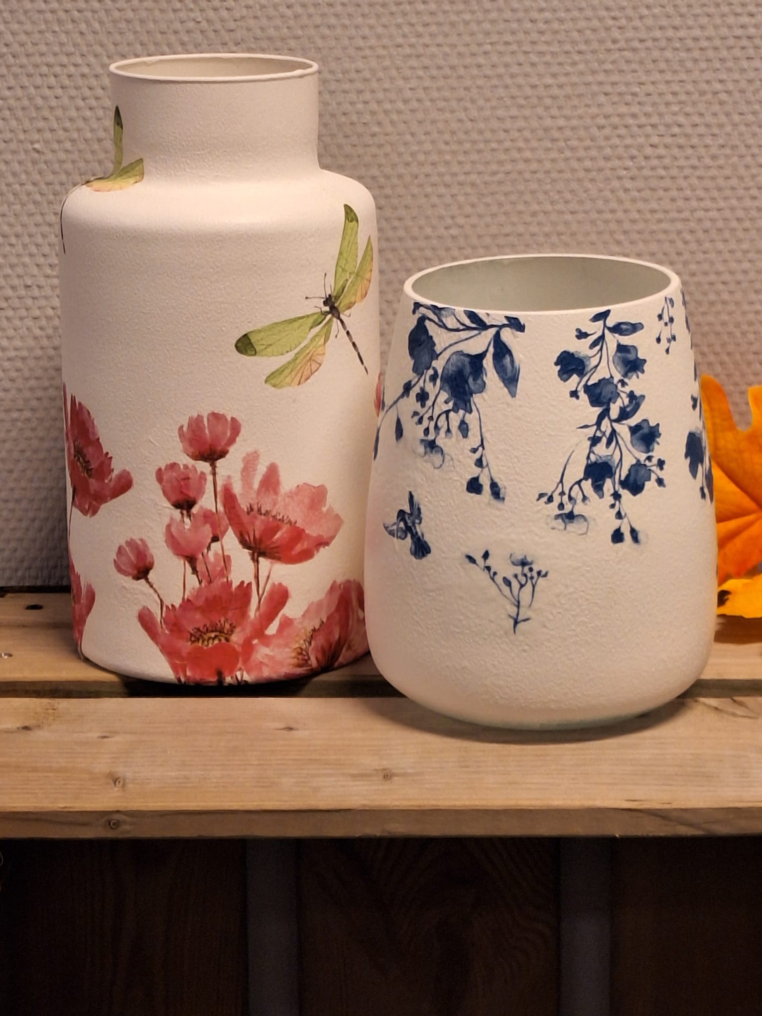 - We hebben keuze van een vaas die we gaan decoreren met de techniek decoupage