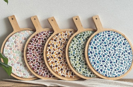 Op 4 juni gaan we mozaieken bij het Klok'uus in 's-Heer Arendskerke. Deze unieke, handgemaakte, grote ronde mozaiek borrelplank is een prachtige aanvulling op je interieur en keuken!
